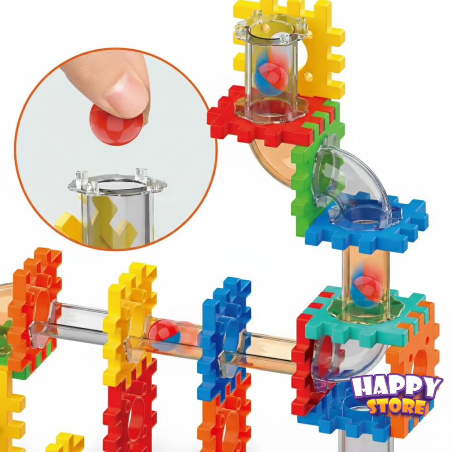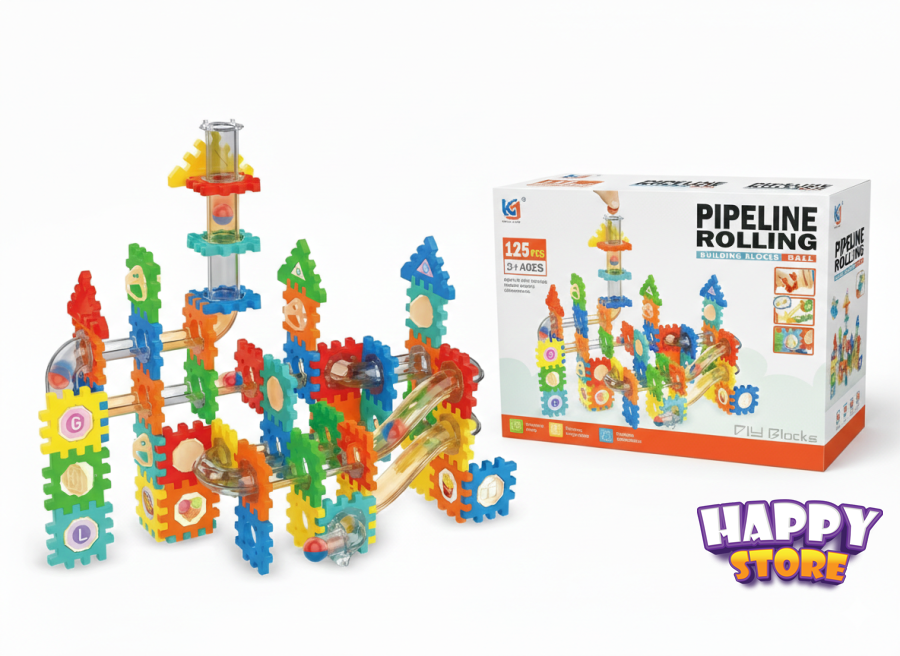 لعبة تركيب تعليمية ممتعة تتكوّن من 125 قطعة ملوّنة، تتيح للطفل بناء مسارات وأنابيب مختلفة لتدحرج الكرات بطرق إبداعية. تساعد على تنمية التفكير المنطقي، والخيال، وحلّ المشكلات، بالإضافة إلى تقوية المهارات الحركية الدقيقة.