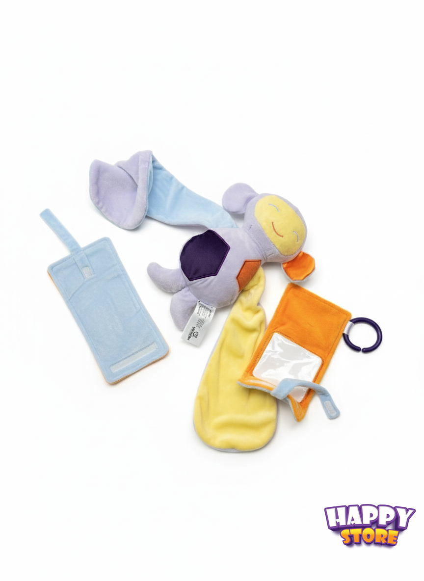 الدمية مصنوعة من أقمشة ملوّنة متعددة الملمس، مع أذرع طويلة قابلة للاحتضان تساعد على تهدئة الطفل وامتصاص رائحة الأم، مما يقلل من القلق ويمنح إحساسًا دافئًا ومألوفًا.