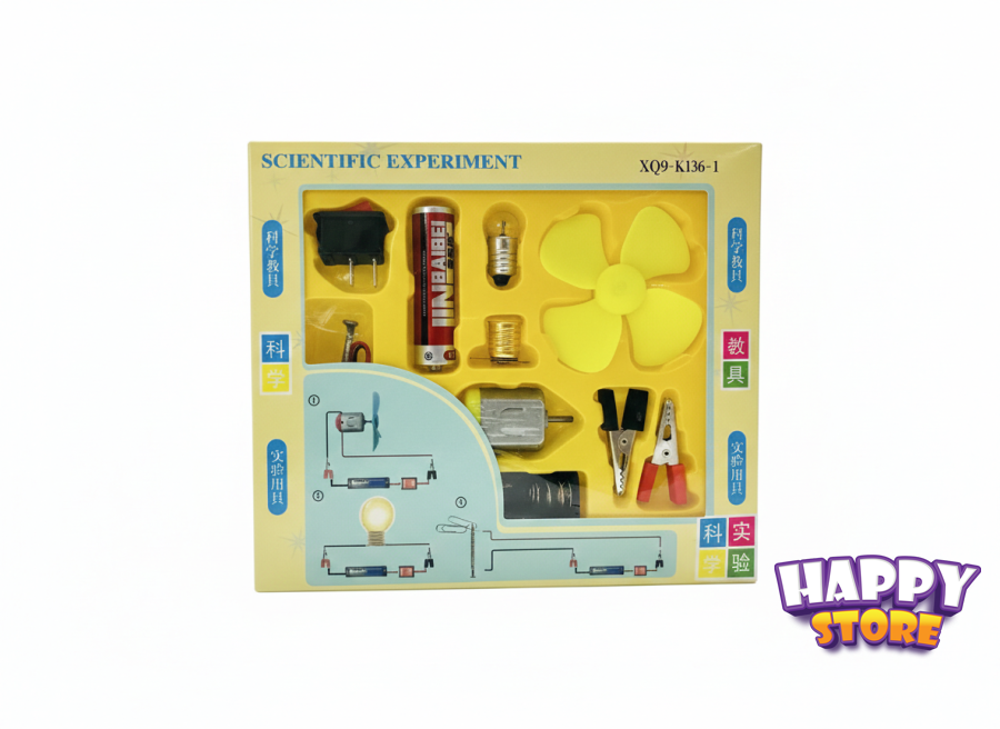 تجارب علمية تعليمية مبسطة (Scientific Experiment Kit)، مخصصة لتعليم الأطفال أساسيات الكهرباء والدوائر الكهربائية بطريقة عملية وممتعة.
