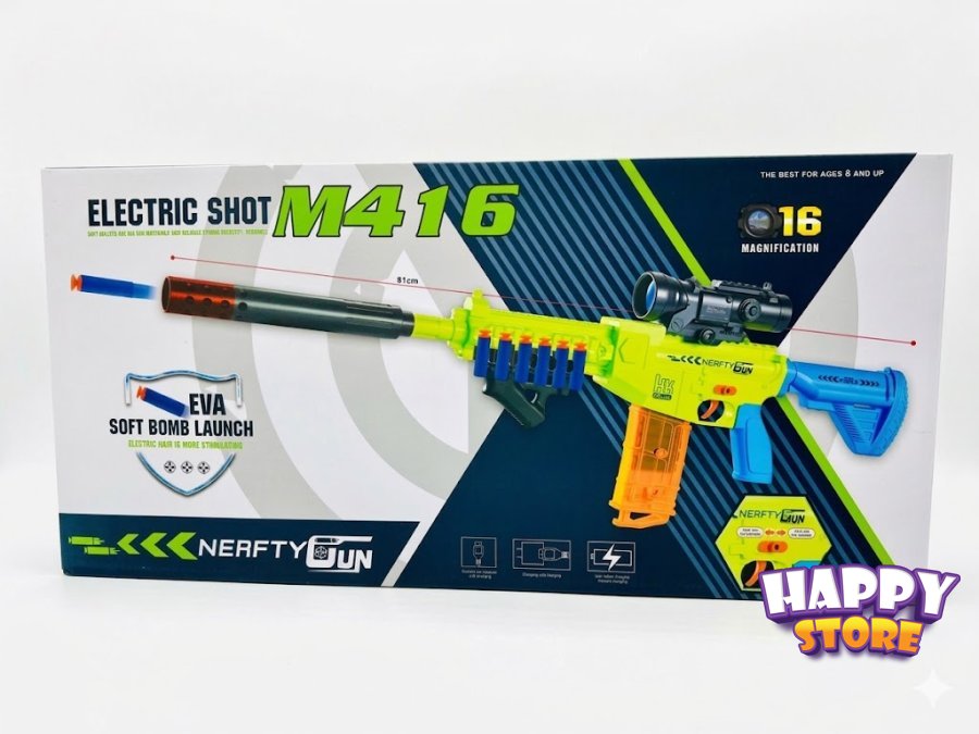 اللعبة تعمل بالبطارية، مما يعني أنها تطلق الطلقات بشكل أوتوماتيكي أو نصف أوتوماتيكي دون الحاجة لسحب المقبض يدوياً في كل مرة.