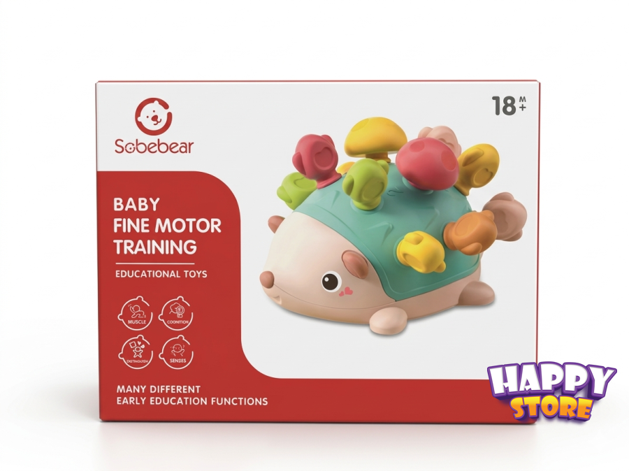 تطوير المهارات الحركية الدقيقة: اللعبة مصممة لمساعدة الأطفال على تقوية عضلات اليدين والأصابع من خلال عملية إدخال وإخراج "الأشواك" الملونة في ظهر القنفذ.