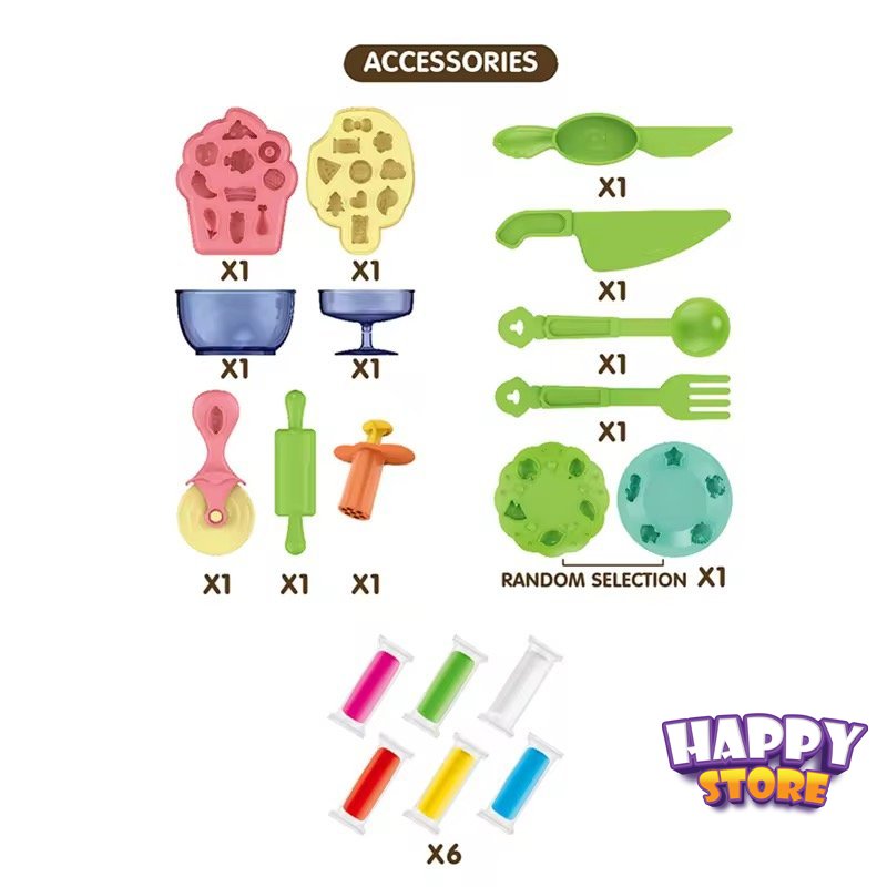 هذه المجموعة هي لعبة تعليمية وإبداعية متكاملة مصممة للأطفال من سن 3 سنوات فما فوق، تهدف إلى تنمية المهارات الحركية الدقيقة والخيال من خلال محاكاة صنع الأطعمة والحلويات.