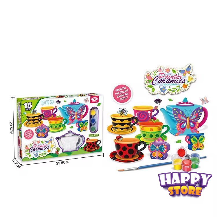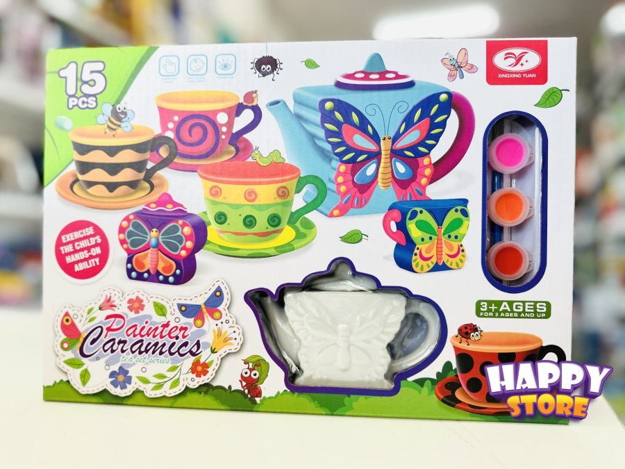 تلوين طقم سيراميك إبريق وفناجين