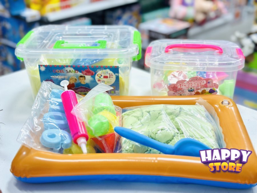 رمل سحري متوفرة بعدة احجام مع ادوات متعددة منها العلبة اوالقوالب اوالبساط البركة