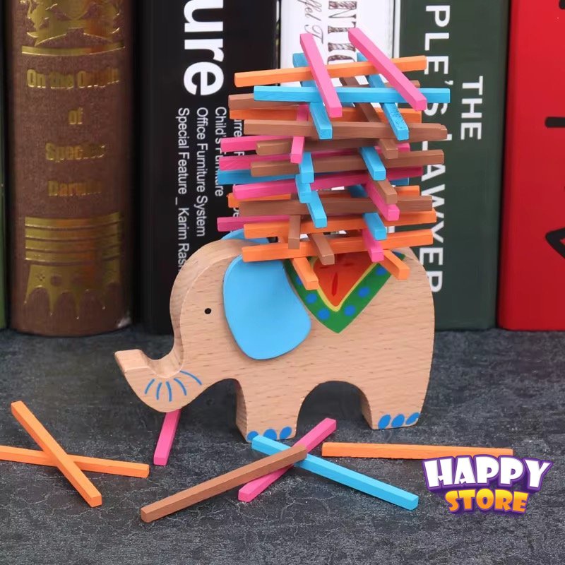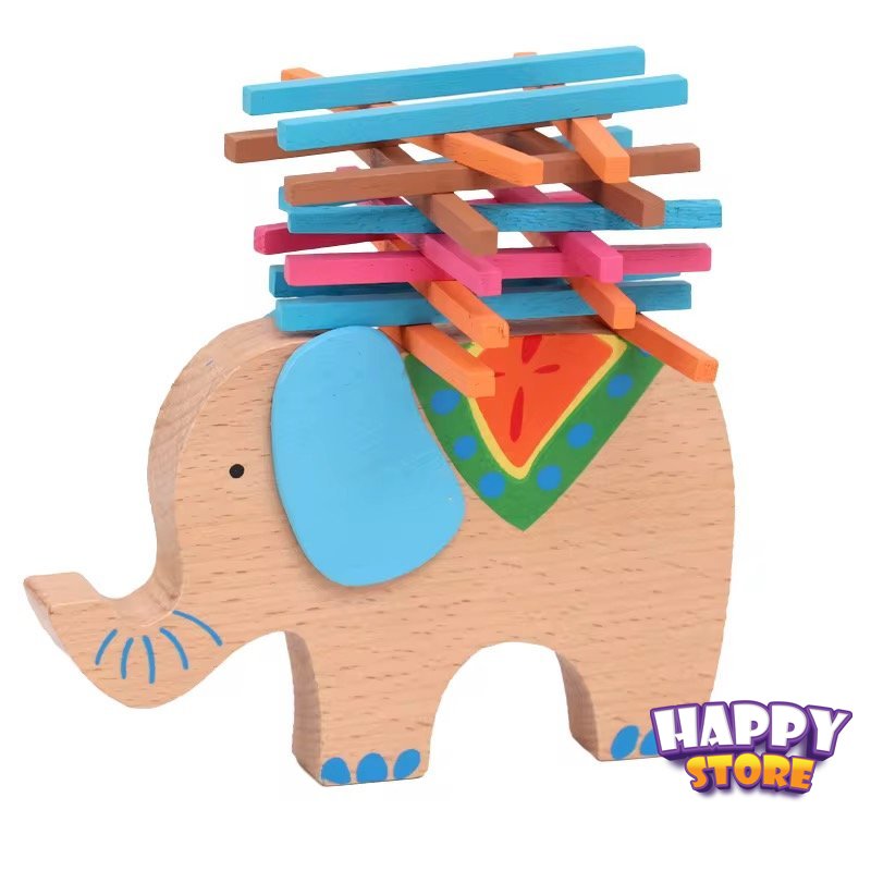 لعبة تركيز وتوازن لعمل هرم بالقطع الخشبية فوق الفيل