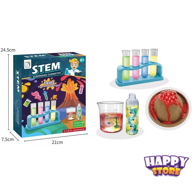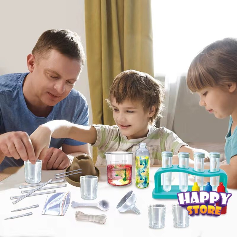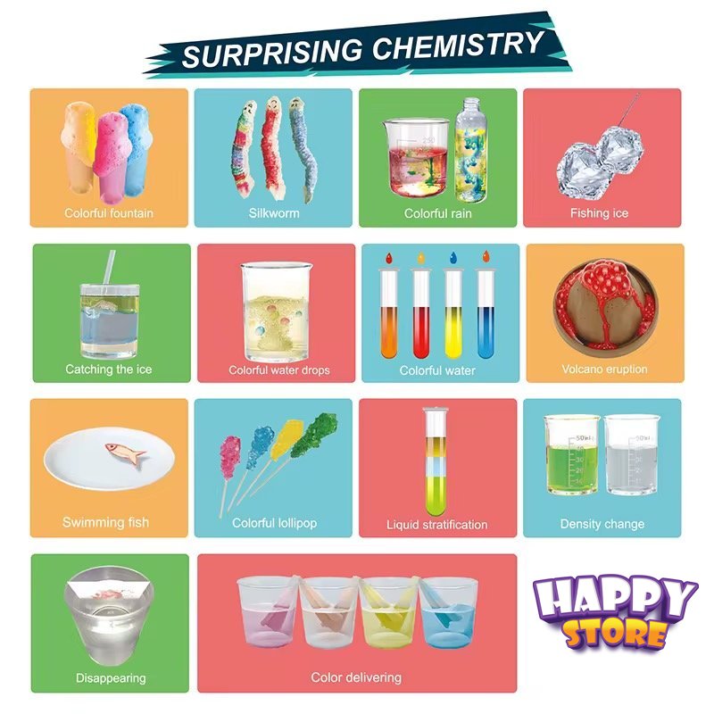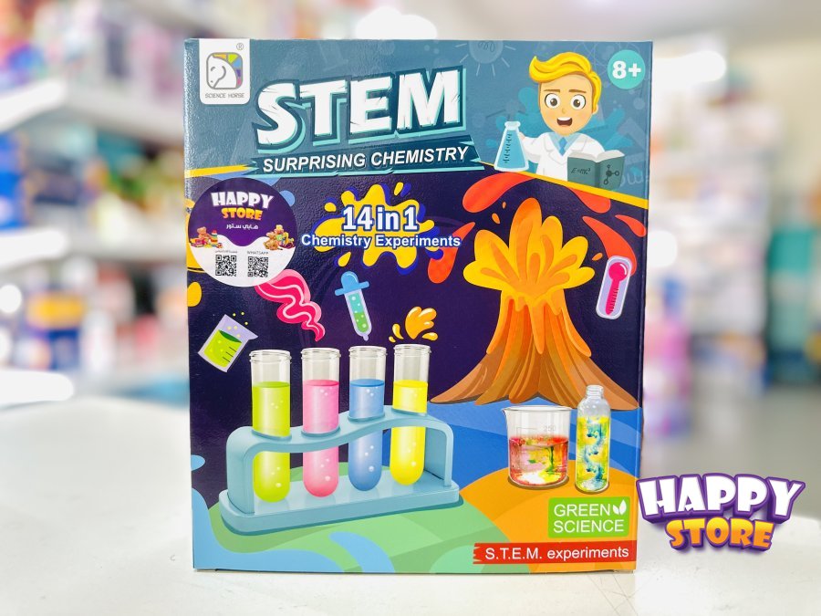 لعبة تحتوي على مواد وادوات لعمل تجارب كينيائية وتفاعلات ممتعة وآمنة للأطفال ومخصصة للأعمار الأكبر من ٨ سنوات