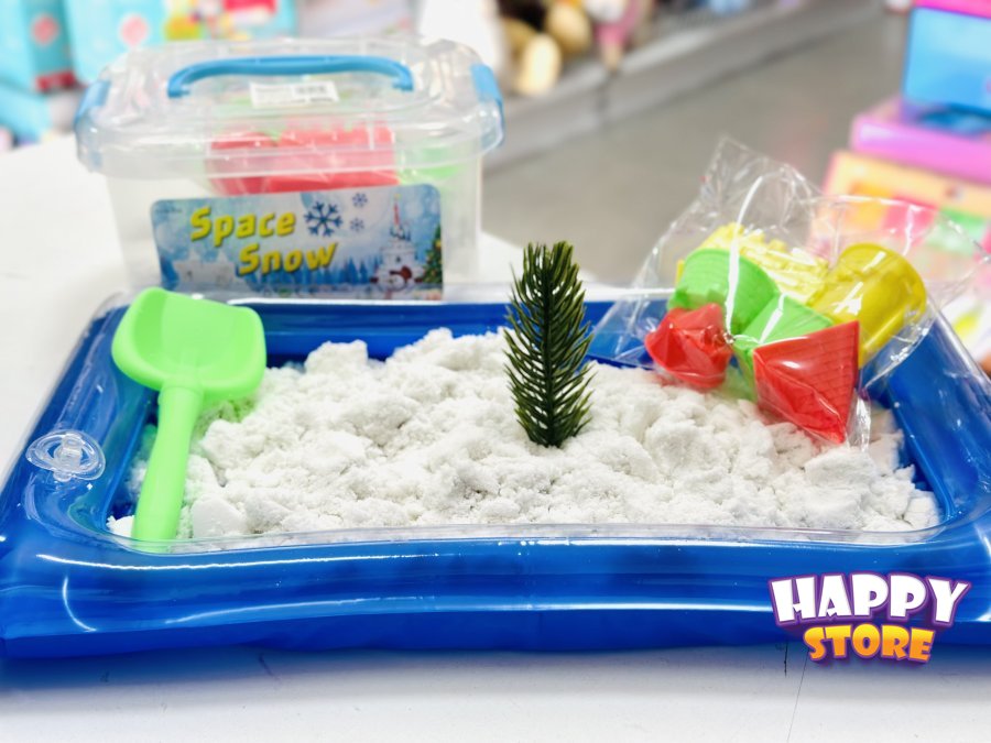 الوزن ١ كيلو مع علبة ومجرفة وبركة نفخ والقوالب والشجرة ( رمل سحري ابيض )